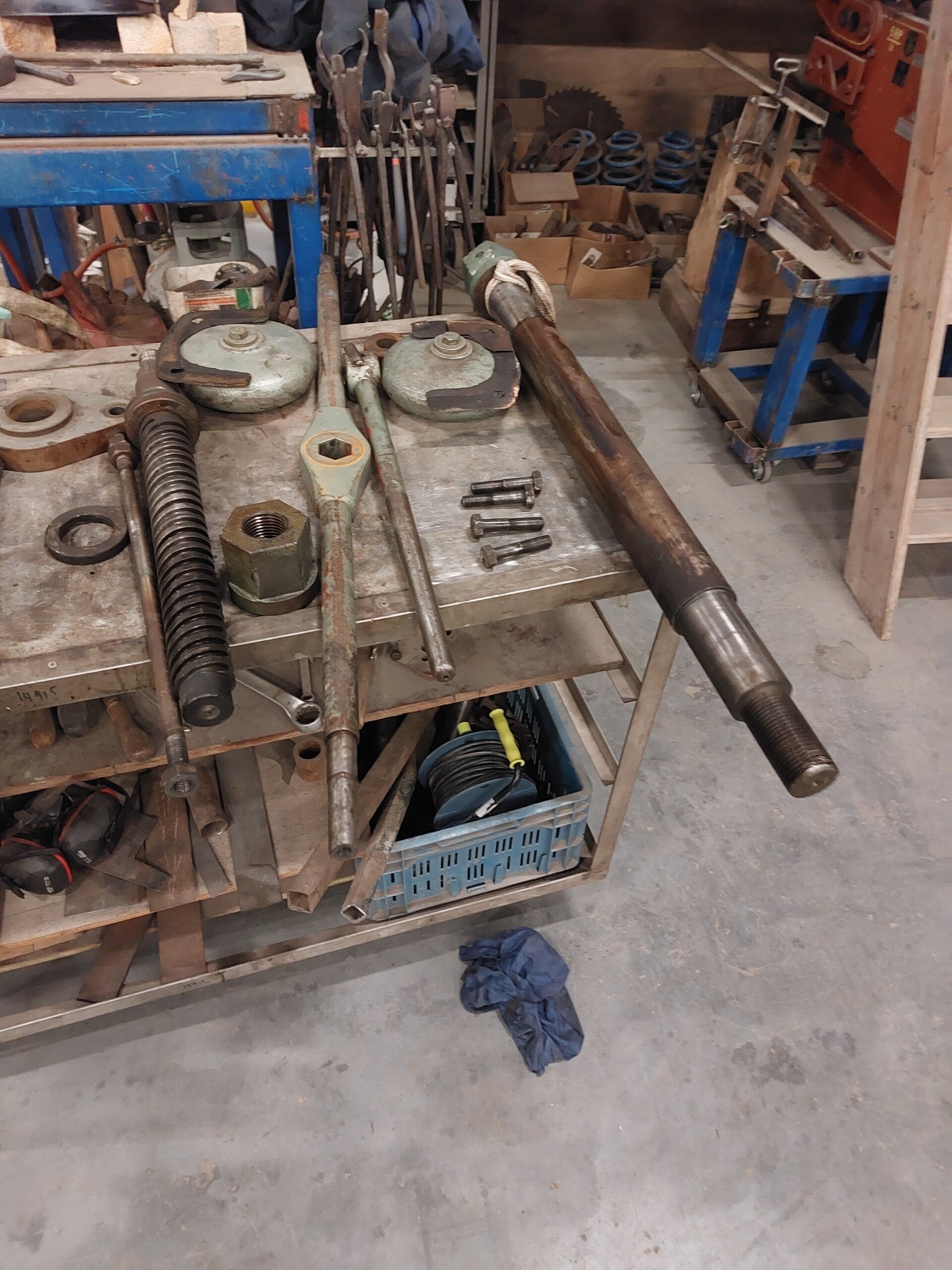 Ik heb deze laten bezorgen vanuit Limburg met de vrachtwagen. Toen hij bij mij kwam zat het spindel vast, dus haalde ik alles uit elkaar en maakt alles schoon van vet olie en verf. Ook liep ik alle onderdelen na of deze geen bramen hadden. Toen kon ik alles weer in elkaar zetten met kopervet en smeerolie op de juiste oppervlaktes. Daarna was het nog een kwestie van de geleiding afstellen en draaide die weer als een zonnetje. Als afwerking hem ik een roestomvormer van rust oleum gebruikt, dat zorgt voor een zwart kleuren en werkt erg goed tegen roest.